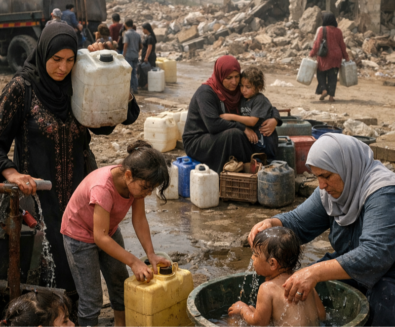 وفي قطاع غزة، وصف التقرير الوضع بـ”الكارثي”، مع تدمير نحو 85% من منشآت المياه والصرف الصحي، واعتماد معظم السكان على صهاريج المياه، وسط ظروف تفتقر إلى الخصوصية والخدمات الصحية الأساسية.