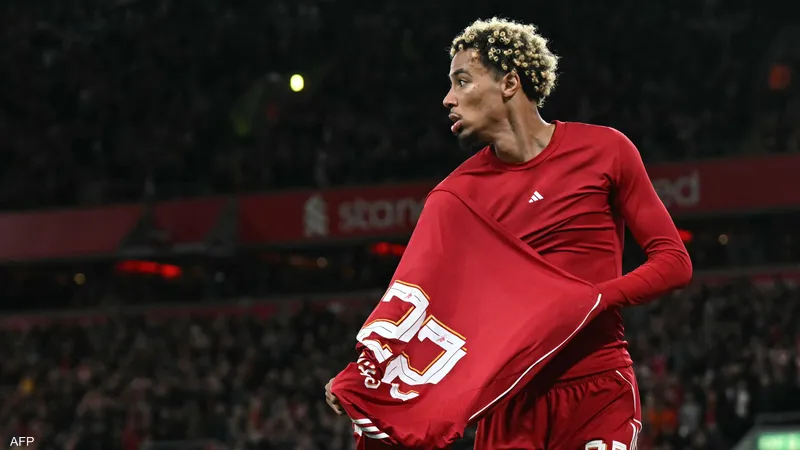 هوغو إيكيتيكي (في الوسط) يحتفل بعد تسجيله هدف ليفربول الأول